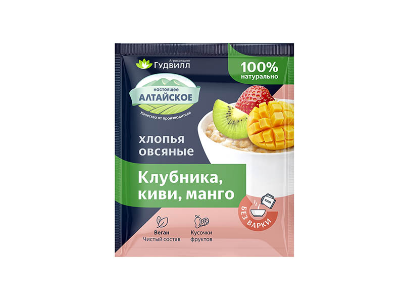 Каша, Овсяные хлопья с клубникой, киви, манго, Гудвилл, 0,04 кг х 17 шт.