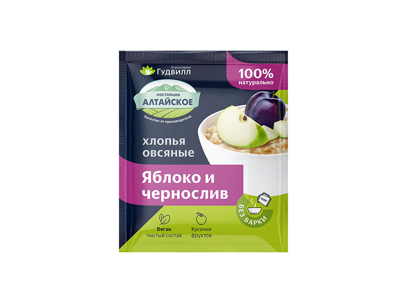 Каша, Овсяные хлопья с яблоком и черносливом, Гудвилл, 0,04 кг х 17 шт.