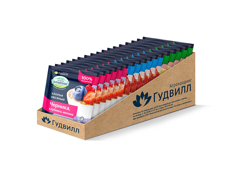 Каша, Овсяные хлопья с черникой, клубникой, малиной, Гудвилл, 0,04 кг х 17 шт.