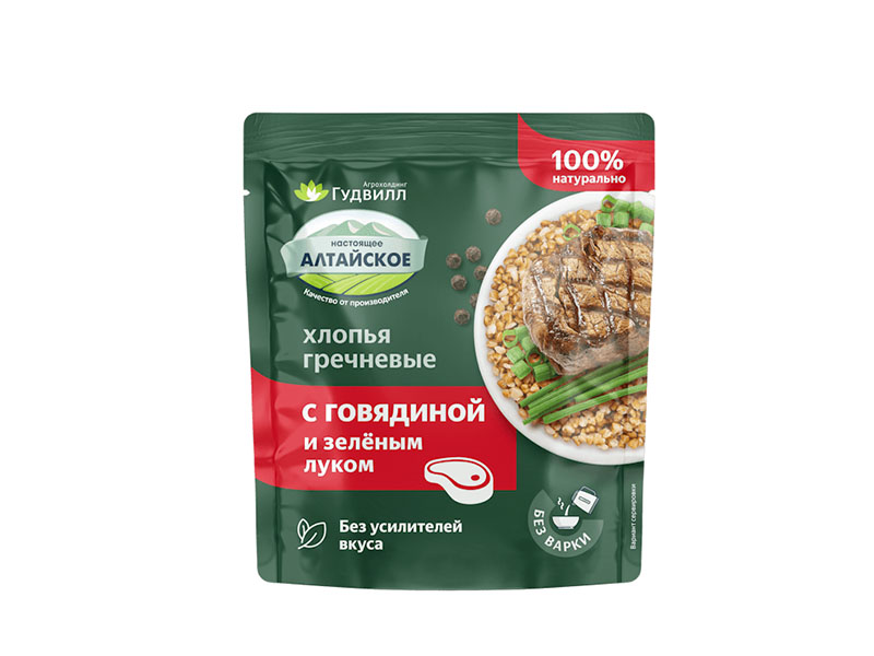 Каша, Гречневые хлопья с говядиной и зеленым луком, Гудвилл, 0,04 кг х 17 шт.