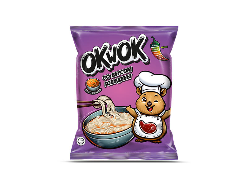 Лапша быстрого приготовления, OkWok с соусом сальса со вкусом говядины , Радуга (Казахстан), 100 г. брикет