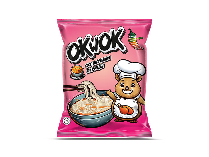 Лапша быстрого приготовления, OkWok с соусом сальса со вкусом курицы, Радуга (Казахстан), 100 г. брикет