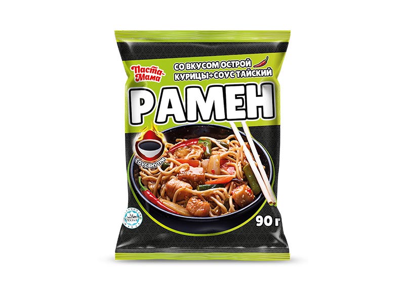 Лапша быстрого приготовления, Рамен с соусом со вкусом острой курицы, Радуга (Казахстан), 90 г. брикет