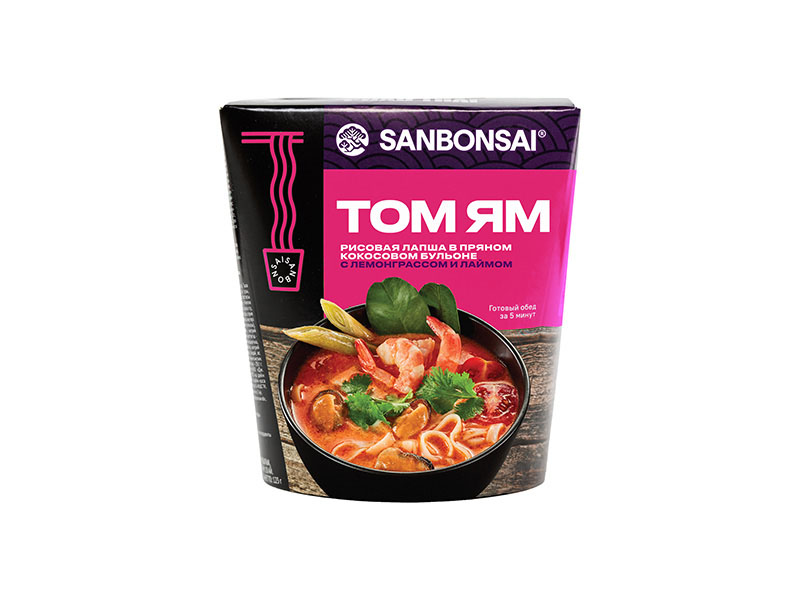 Лапша рисовая Том Ям в кокосовом бульоне с лемонграсом и лаймом sanbonsai, Санбонсай, 113 гр