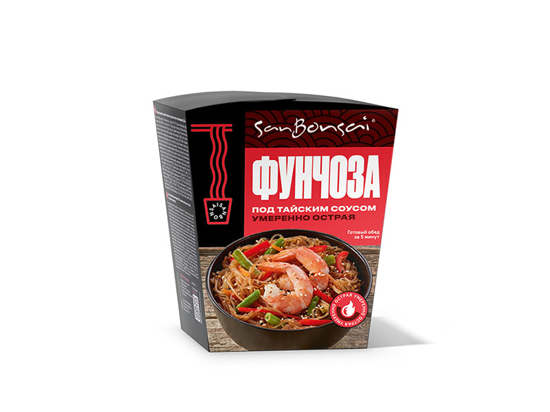 Быстро - не значит вредно. За счет свойств фунчозы развариваться в горячей воде и соусов на основе соевых бобов, обеды в коробках САНБОНСАЙ становятся идеальным выбором для тех, уто следит за питанием и временем. В термостойкой коробке, в индивидуальных упаковках: фунчоза, соус соевый, соус тайский.