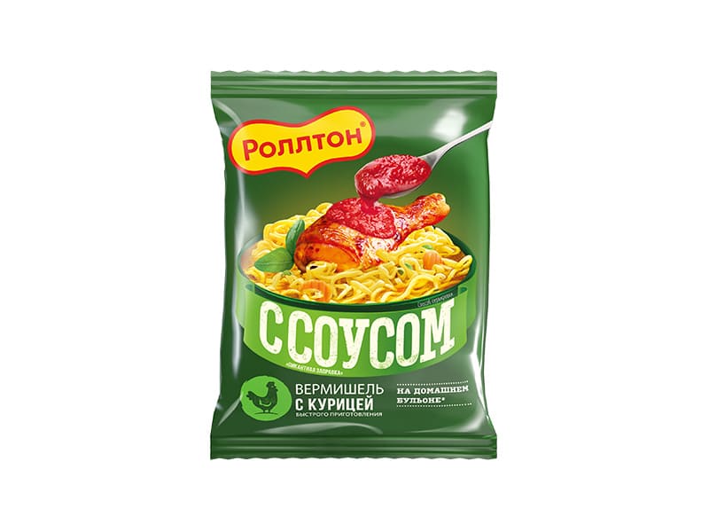 Изделия макаронные быстрого приготовления. Вермишель на домашнем бульоне с курицей и соусом «Пикантная заправка». Роллтон, МФС, пачка, 65 г