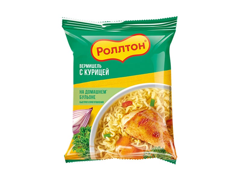 Изделия макаронные быстрого приготовления. Вермишель на домашнем бульоне с курицей. Роллтон, МФС, пачка, 60 г