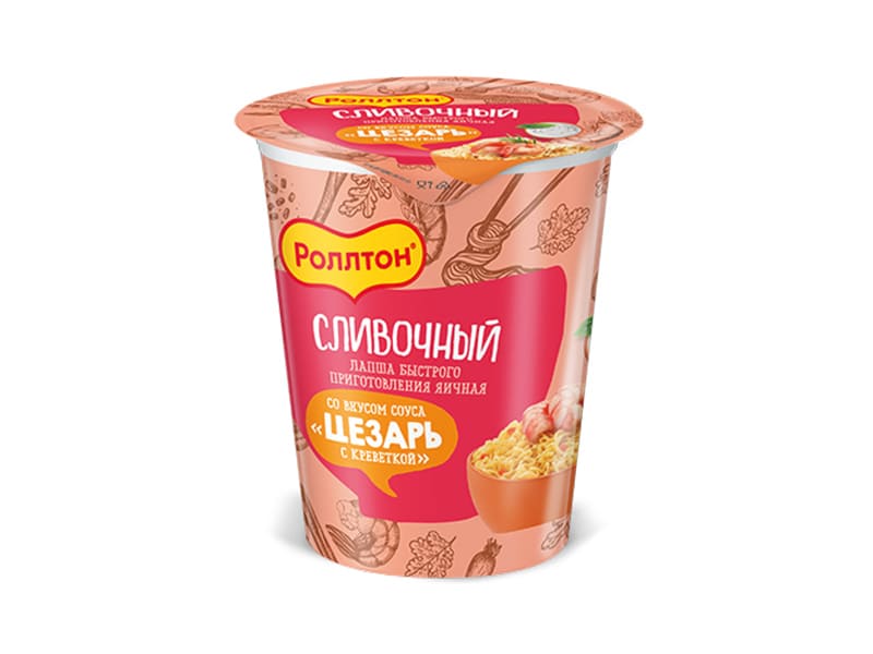 Изделия макаронные быстрого приготовления яичные. Лапша со вкусом соуса «Цезарь с креветкой». Роллтон стакан 70г