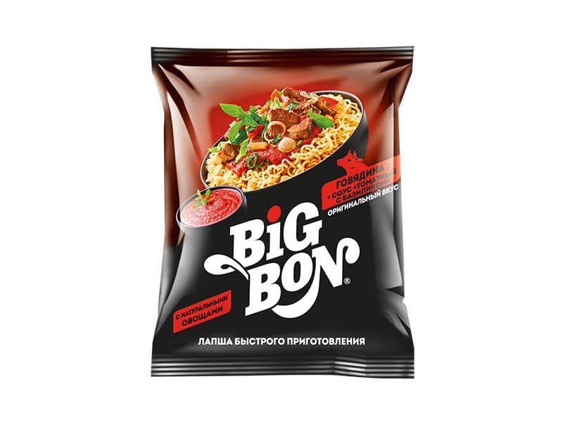 Изделия макаронные быстрого приготовления. Лапша «Говядина + соус «Томатный с базиликом».