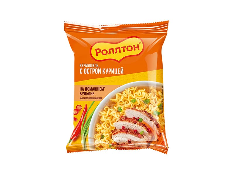Изделия макаронные быстрого приготовления. Вермишель на домашнем бульоне с острой курицей. Роллтон, МФС, пачка, 60 г