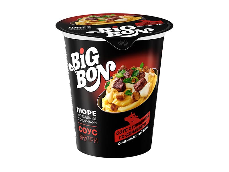 Концентраты пищевые. Первые и вторые обеденные блюда. Пюре картофельное с сухариками и соус с говядиной по-домашнему "BIGBON"