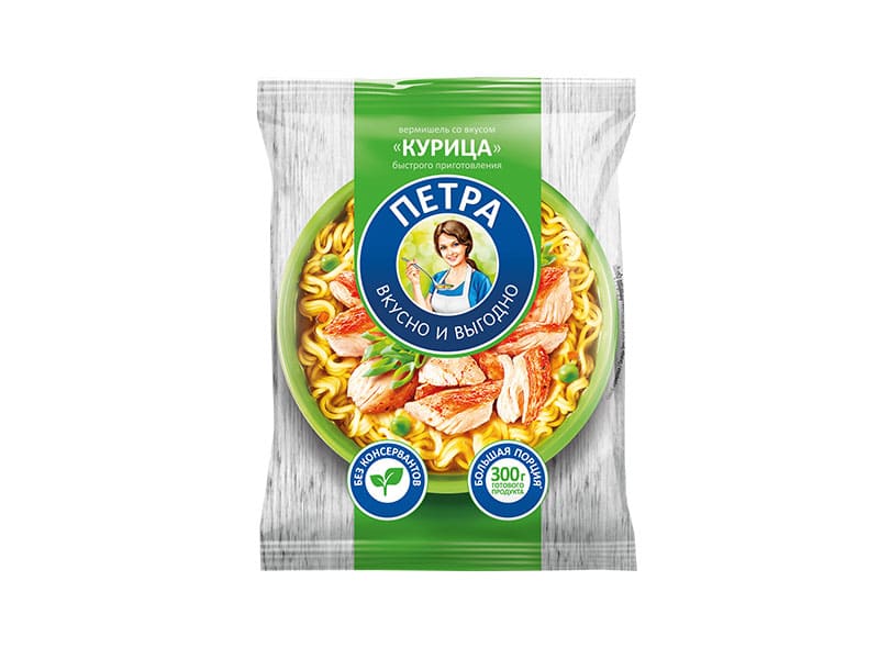 Изделия макаронные быстрого приготовления. Вермишель с куриным вкусом "Петра"