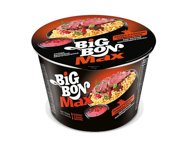 Изделия макаронные быстрого приготовления. Лапша с соусом с говядиной гриль, BIGBON MAX, МФС, 95 г