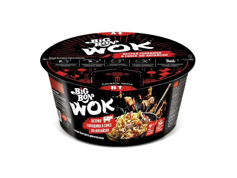 Изделия макаронные быстрого приготовления. Лапша Острая говядина в соусе по-китайски, BIGBON, МФС, чашка, 85г