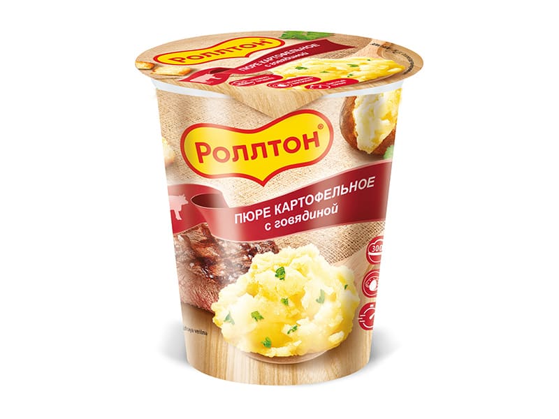 Пюре картофельное фасованное (сухое) с говядиной Роллтон, МФС, картонный стакан, 55 г