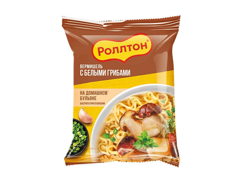 Изделия макаронные быстрого приготовления. Вермишель на домашнем бульоне с белыми грибами, МФС, Роллтон, пачка 60 г
