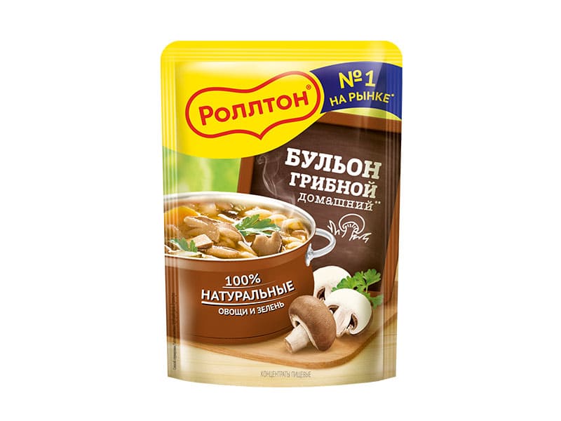 Концентраты пищевые. Первые обеденные блюда. Бульон грибной домашний, Роллтон, МФС, 90г