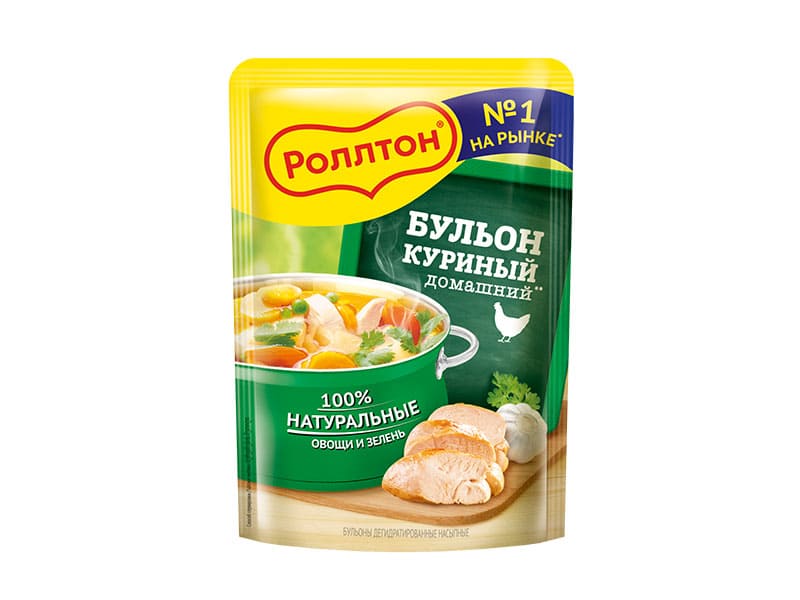 Концентраты пищевые. Первые обеденные блюда. Бульон куриный домашний, Роллтон, МФС, 90г
