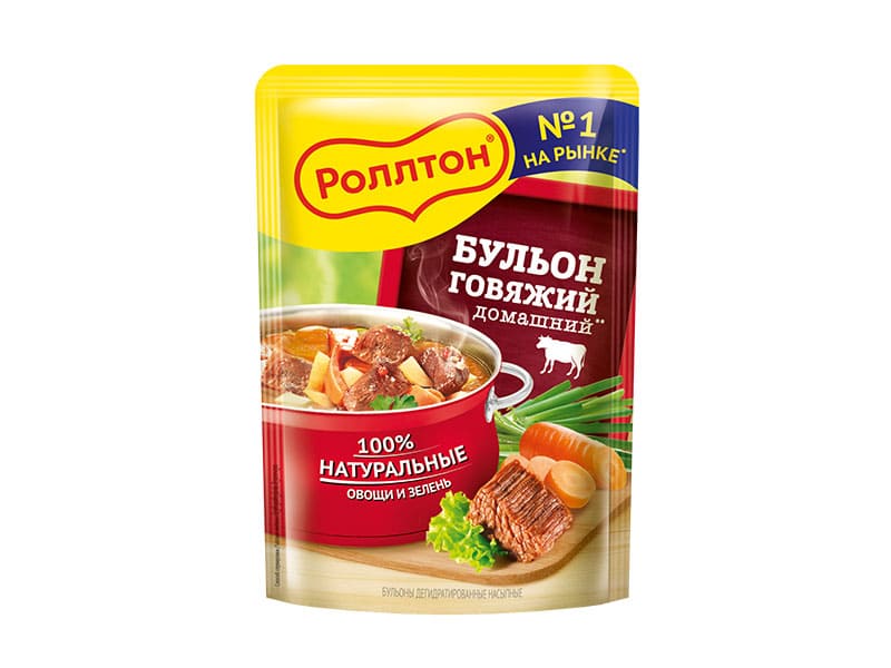 Концентраты пищевые. Первые обеденные блюда. Бульон говяжий домашний, Роллтон, МФС, 90г