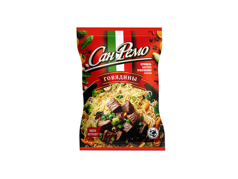 Изделия макаронные быстрого приготовления, СанФемо, говядина, Анаком, пакет, 50 г.