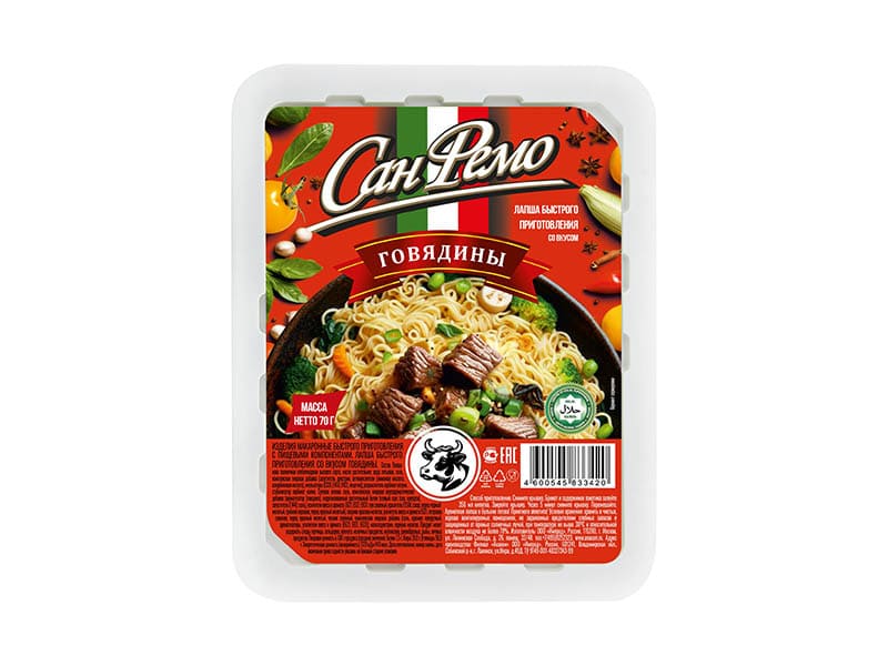 Изделия макаронные быстрого приготовления, СанФемо, говядина, Анаком, лоток, 70 г.
