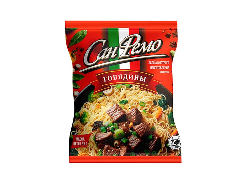 Изделия макаронные быстрого приготовления, СанФемо, говядина, Анаком, пакет, 85 г.