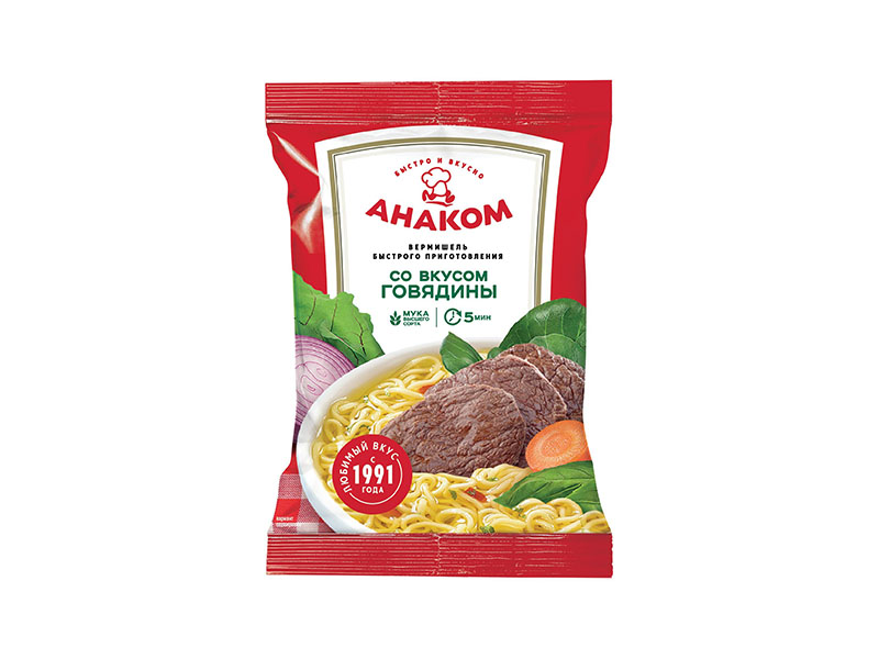 Изделия макаронные быстрого приготовления, говядина, Анаком, пакет, 60 г.