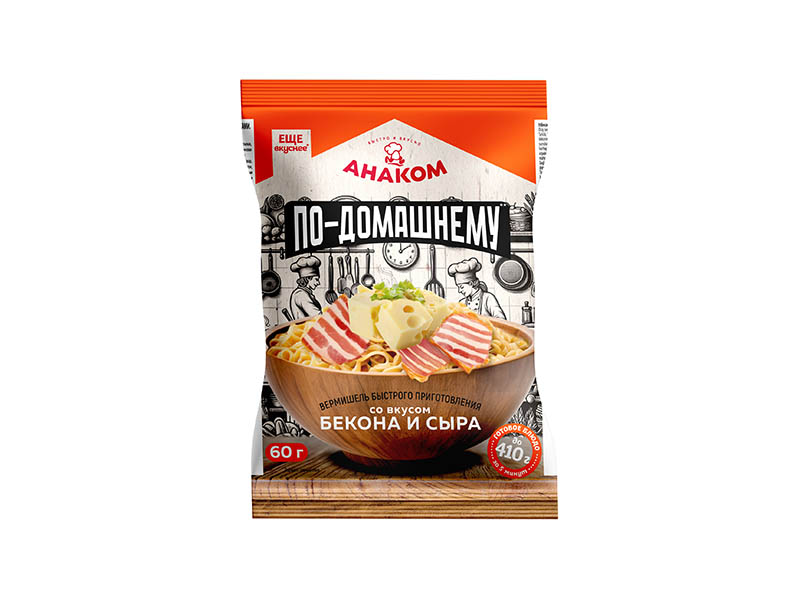 Изделия макаронные быстрого приготовления, По-домашнему, бекон и сыр, Анаком, пакет, 60 г.