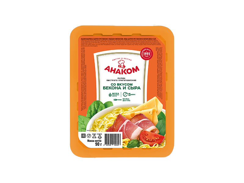 Изделия макаронные быстрого приготовления, Бекон и Сыр, Анаком, лоток, 90 г.