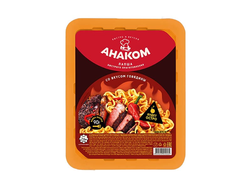 Изделия макаронные быстрого приготовления, Острая Говядина, Анаком, лоток, 90 г.