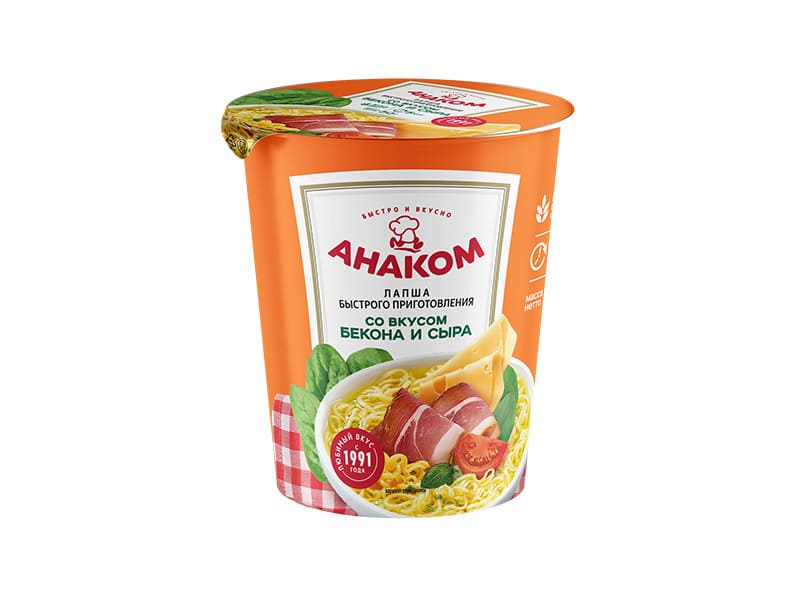 Изделия макаронные быстрого приготовления, Бекон и Сыр, Анаком, стакан, 50 г.