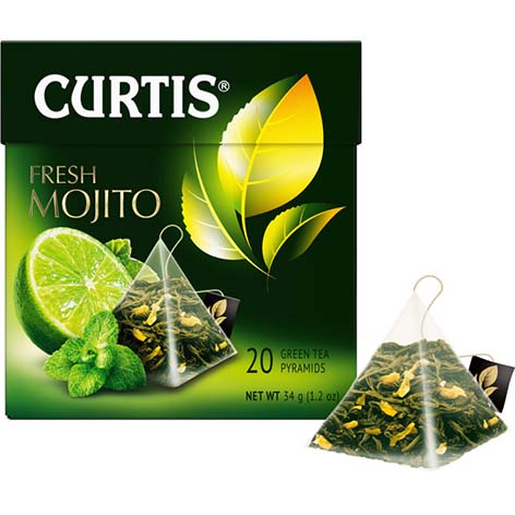 Чай зеленый Кертис Фреш Мохито (Curtis Fresh Mojito), Майский чай, 20 пак*1,7 г х 12 шт с/я пирамидки.