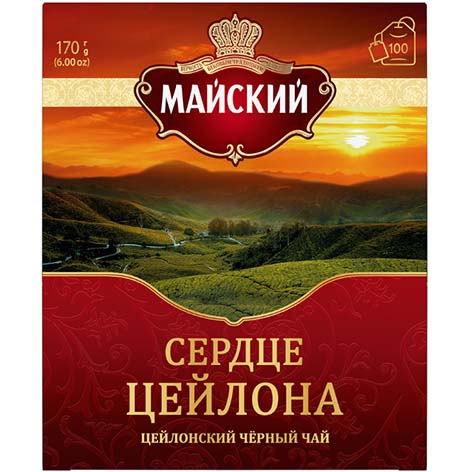 Чай черный Майский Сердце Цейлона, Майский чай, 100 пак*1,7 г х 6 шт с/я.