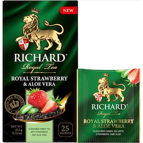 Чай зеленый Ричард (Richard Royal Strawberry & Aloe Vera), Майский чай, 25пак*1,5г х 12шт с/я сашет.