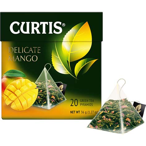 Чай зеленый Кертис Нежный Манго (Curtis Delicate Mango), Майский чай, 20 пак*1,8 г х 12 шт с/я пирамидки.