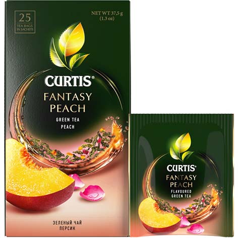 Чай зеленый Кертис Фэнтази Пич (Curtis Fantasy Peach), Майский чай, 25 пак*1,5 г х 12 шт с/я сашет.