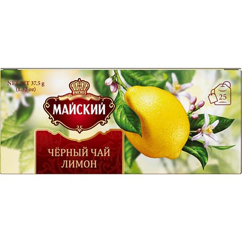Чай черный Майский Лимон, Майский чай, 25 пак*1,5 г х 18 шт с/я.