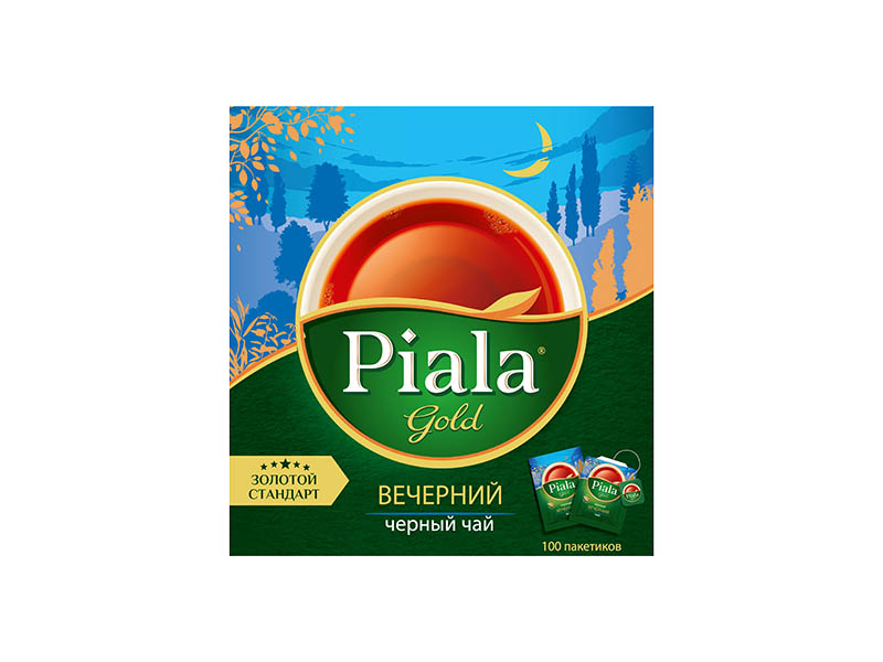 Чай черный с бергамотом Вечерний, Пиала Gold, Эрджи Брендс (Казахстан), 100 пак. (фольга)