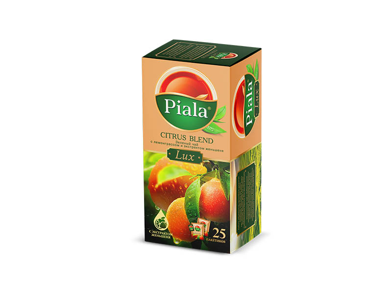 Чай зеленый с лемонграсом и экстрактом женьшеня Citrus blend tea, Piala Lux FL ТВ, Эрджи Брендс (Казахстан), 25 пак. (фольга)
