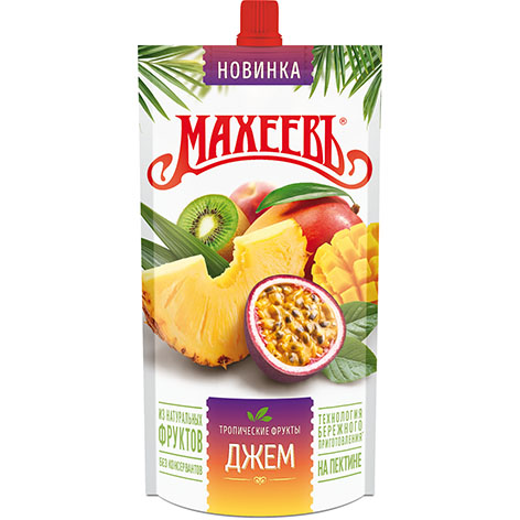 Джем приготовлен из спелых тропических фруктов, которые содержат большее количество витаминов и антиоксидантов.