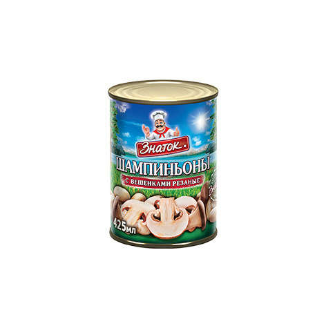 Шампиньоны с вешанками резаные, Знаток, ж/б, 400 г.