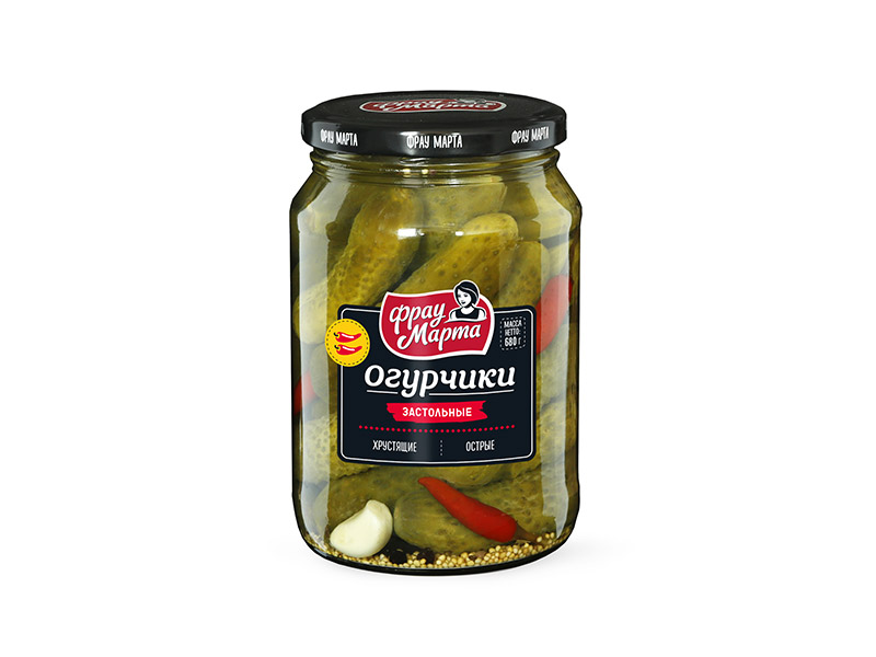 Огурчики Застольные с перцем, Фрау Марта, Эрконпродукт, ст/б, 680 г