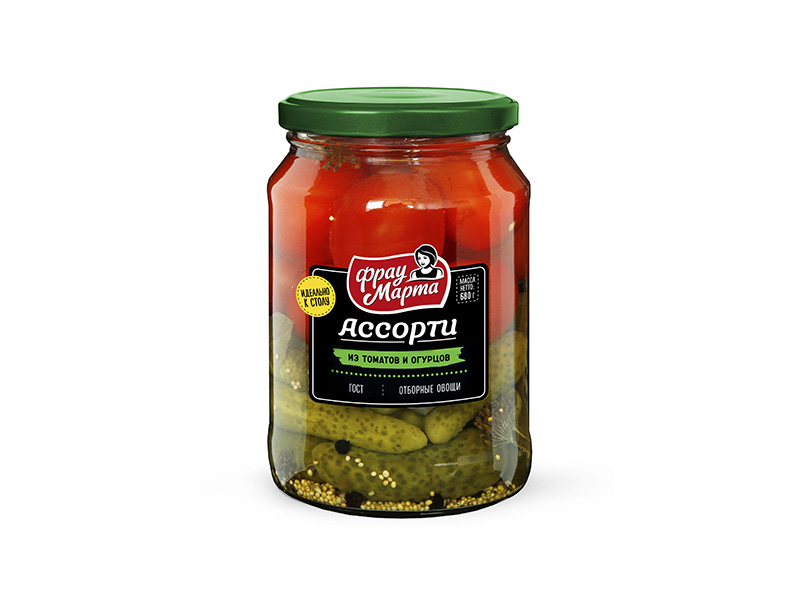 Ассорти Томаты/Огурцы, Фрау Марта, Эрконпродукт, ст/б, 680 г