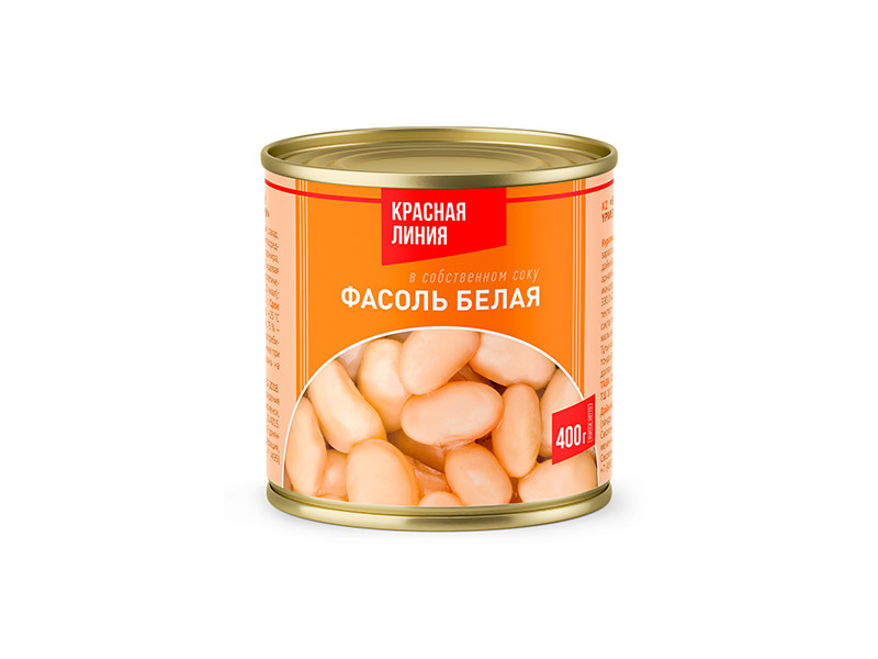 Фасоль белая в собственном соку, Красная линия, Эрконпродукт, ж/б, 400 г