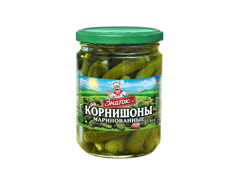 Огурцы Корнишоны маринованные, Знаток, стекло, 350 г.