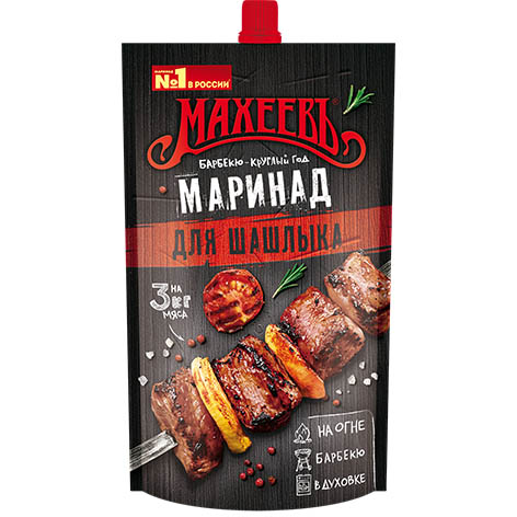 Маринад Махеевъ идеально подходит для любых барбекю или шашлыков, для запеченного мяса, рыбы или дичи.