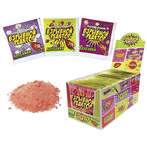 Взрывная карамель с ароматом клубники с шипучкой, сухая смесь.
