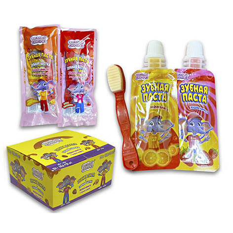 Зубная щетка сахарная конфета плюс тюбик с желе-пастой ассорти