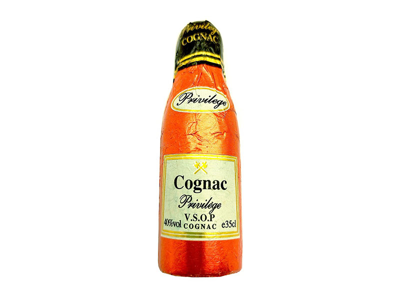 Конфеты в шоколадной глазури в форме бутылочек с помадной начинкой со вкусом Коньяка