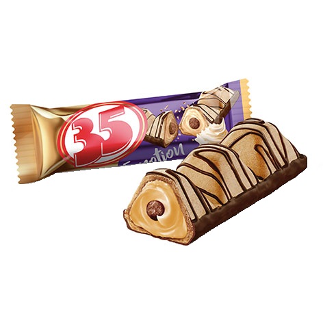 Укрупненная вафельная конфета со сливочной начинкой в нежнейшей шоколадной глазури, с хрустящим шариком внутри.